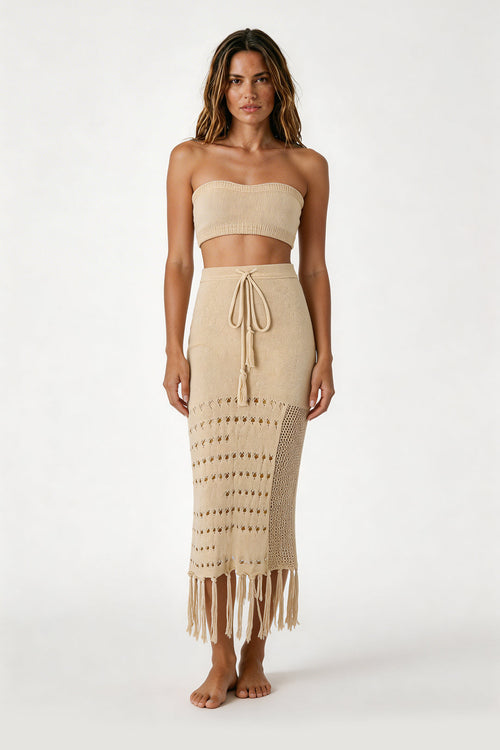 Bej Örgü Etekli Plaj Seti